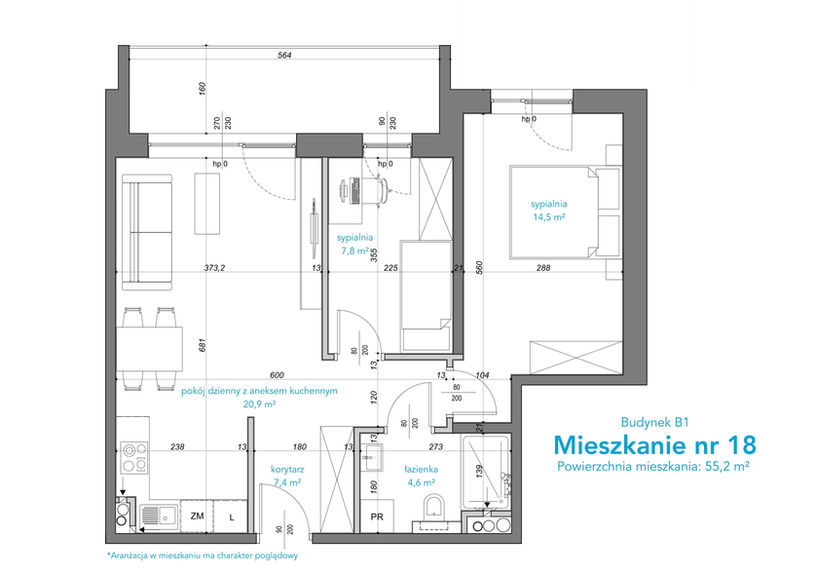 aneksem kuchennym 20,9 m²