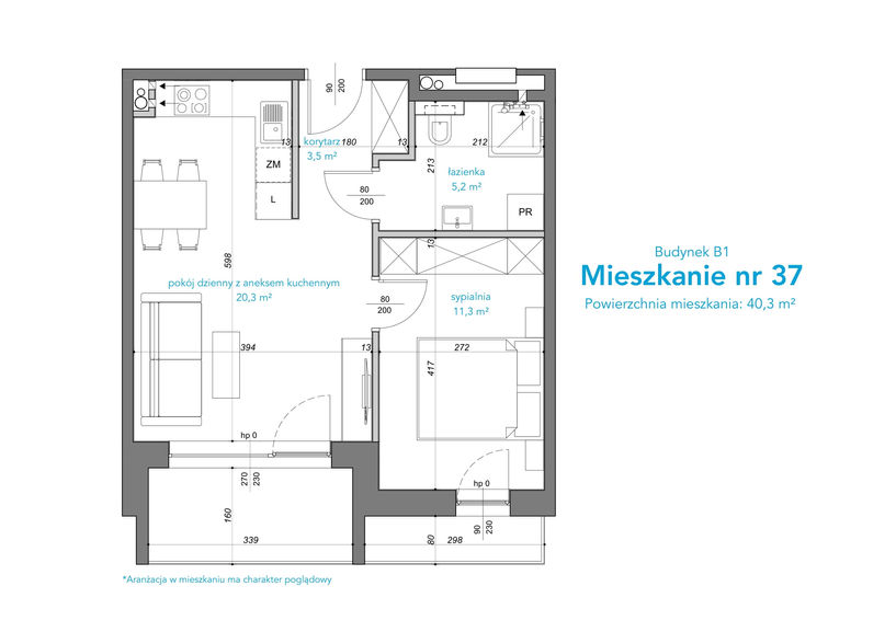 aneksem kuchennym 20,3 m²